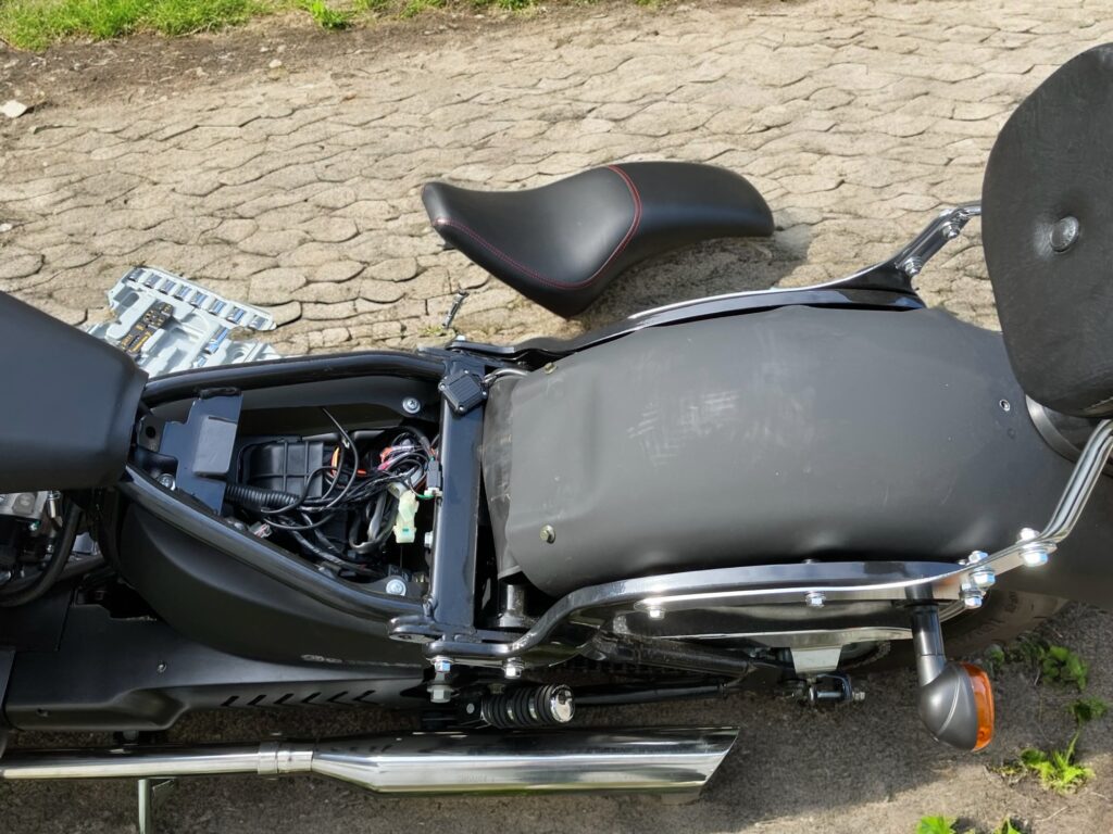 収納はほぼ無し。クルーザー(アメリカン)なのでしょうがないですね。