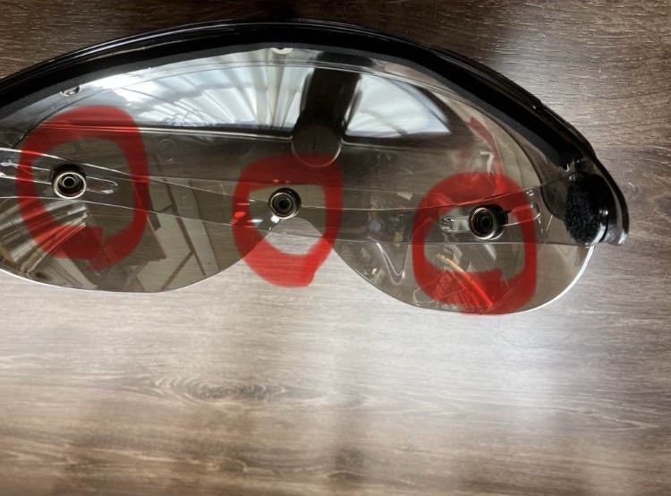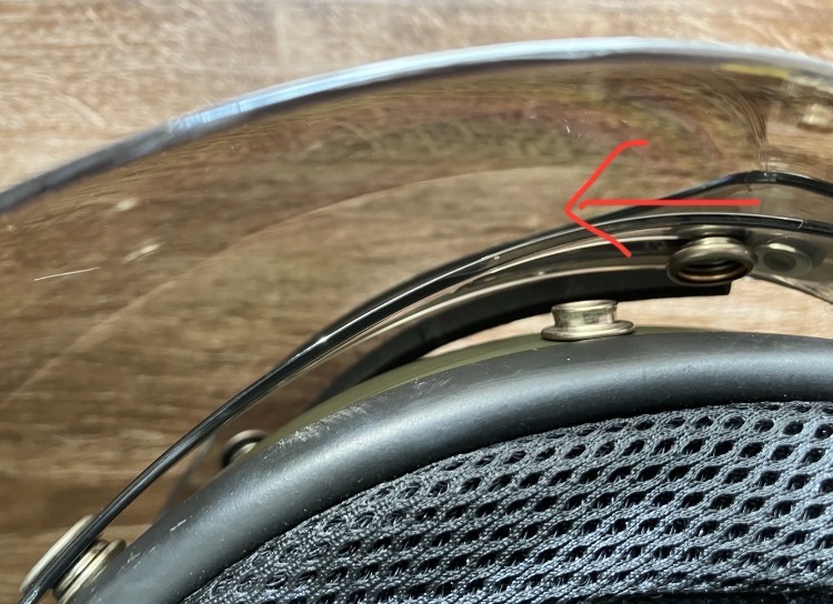 ほとんどのジェットヘルの前方の額の部分に3つと左右の頬に金具2つの合計5個の金具が付いています。